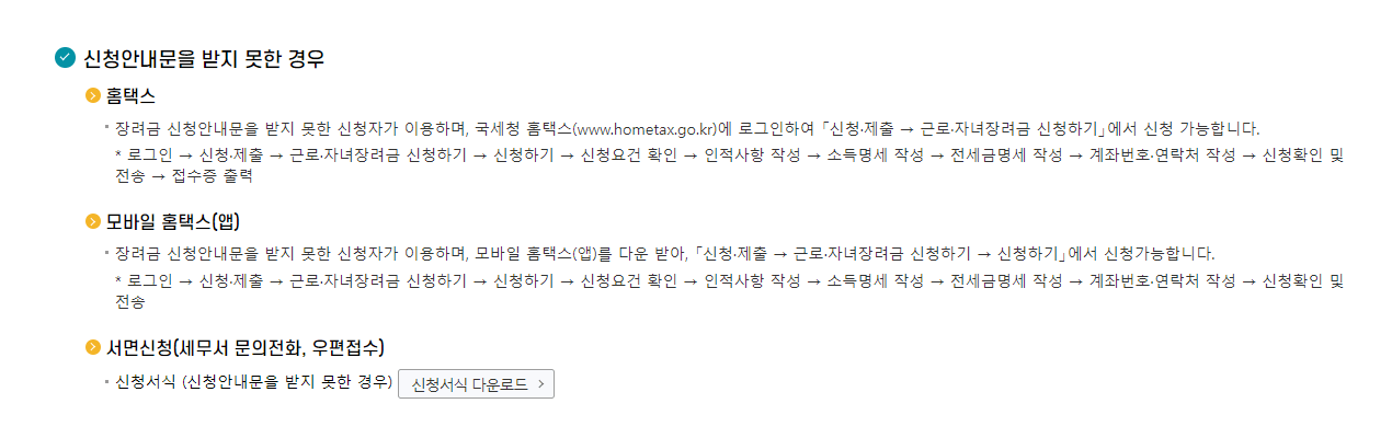 8월 근로장려금을 신청하지 않았다면 11월 30일까지 다시 신청할 수 있으니 전혀 걱정하지 않아도 됩니다.