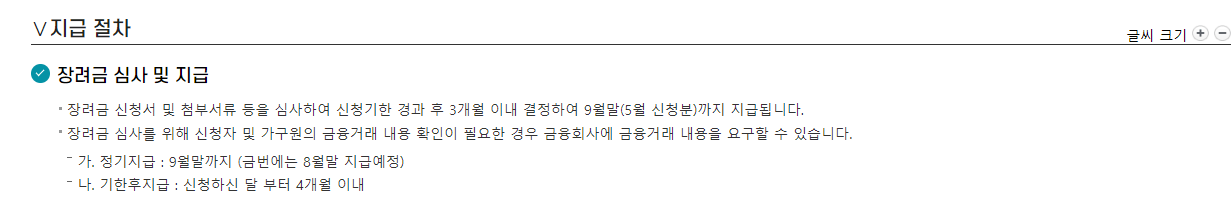 예를 들어 2022년 귀속 상시근로장려금을 2023년 5월에 신청하면 2023년 8월 말일까지 지급됩니다.