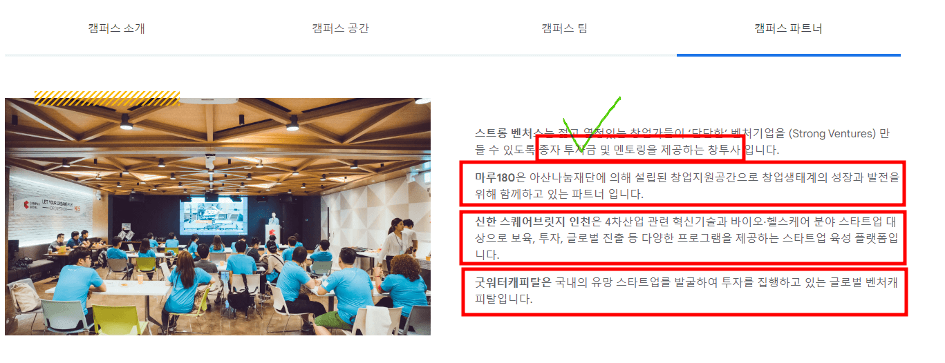 구글 외에도 처음 보셨던 화면에서 처럼 다양한 창업지원 무료 사무실프로그램을 운영하는 기관들이 있습니다.