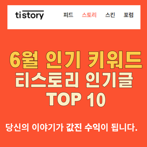 2024년 6월의 티스토리 인기 글 Top 10은 다음과 같습니다: