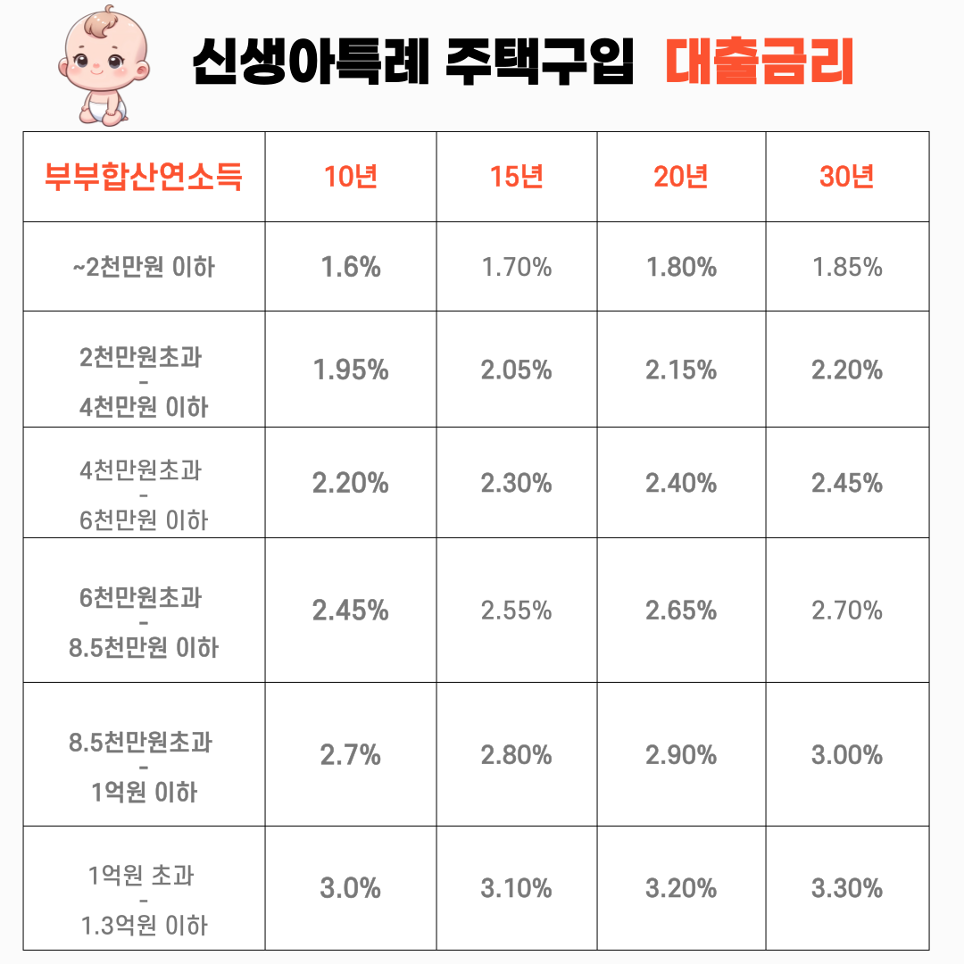 신생아특례 주택구입 대출금리 및 조건