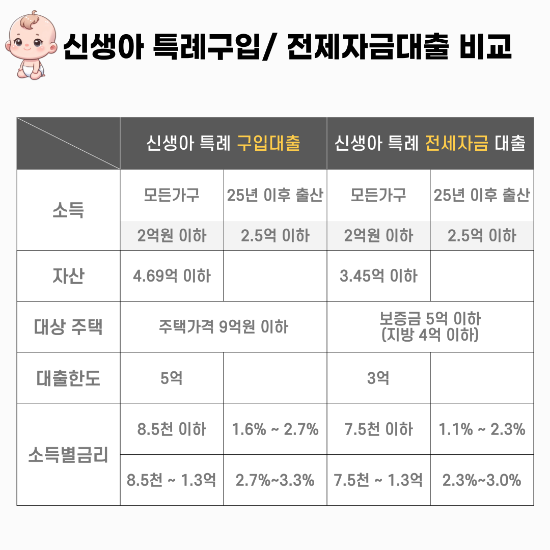 신생아 특례 구입대출 및 신생아 특례 전세자금 대출 비교