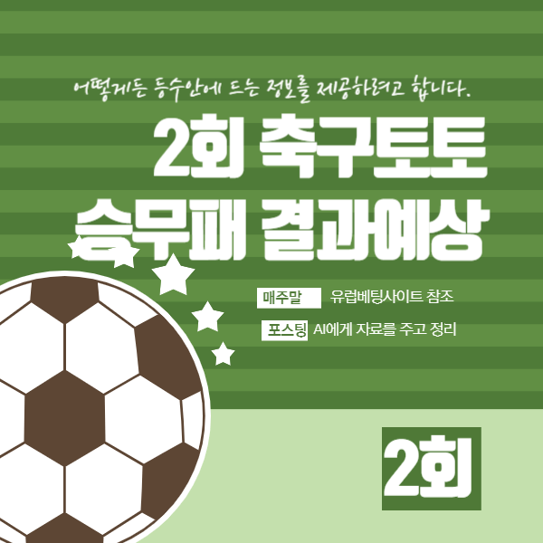 제2회차 축구토토승무패입니다. 1회에 많은 1등 당첨자가 나와서 별 재미가 없었죠? 이번 회차는 그래서 그런지 어려운 경기들로 가득차 있네요. 이월을 예상하고 일부러 경기를 꾸민 것 같은데 이럴 수록 재미가 있어집니다. 이번 회차도 역시 정보를 기본 바탕으로 AI에게 의뢰를 하였습니다.